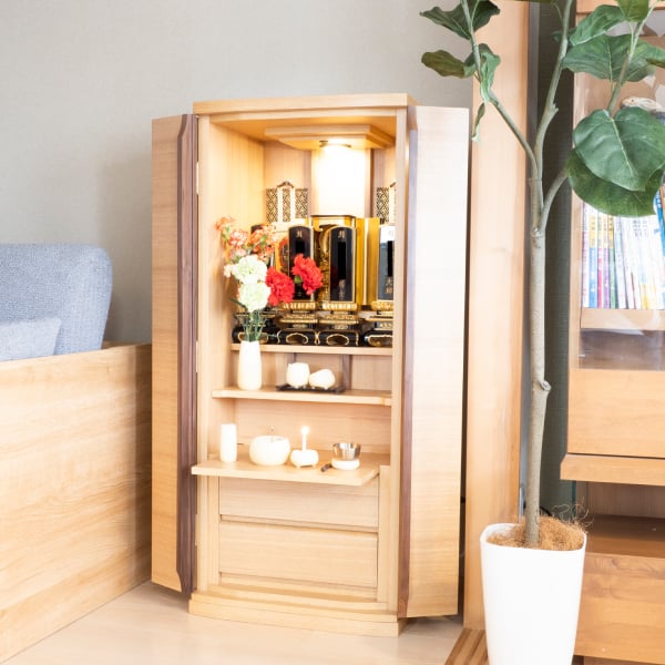 事例カテゴリ: 仏壇・仏具の販売 仏壇・仏具の修理 仏壇のリメイク その他 仏壇のお掃除 仏壇のリメイク 洋風インテリアに馴染むモダン仏壇 Before After × ❮ ❯ 担当者からのコメント 今回のお仏壇は、お部屋の雰囲気に溶け込む“モダンな佇まい”を大切にしてリメイクしました。 洋風インテリアの中でも違和感なく、美しい家具の一部として感じられるよう、色味や質感のバランスを細かく調整しています。 伝統的なお祀りの心はそのままに、現代の暮らしにも自然に寄り添う ——そんな新しいかたちのお仏壇として、末永くご家族を見守ってくれればうれしく思います。 « 前の記事 実績一覧に戻る